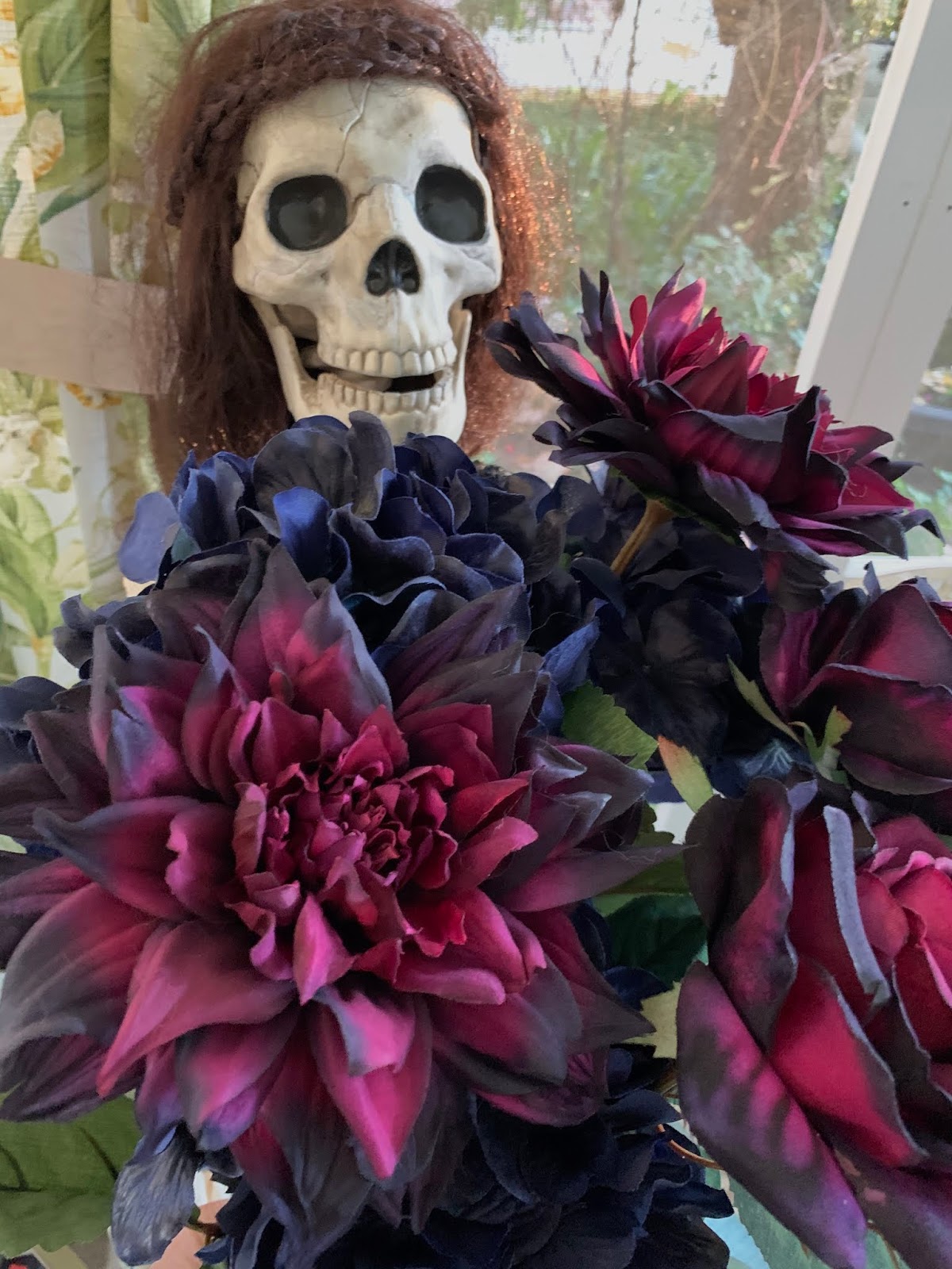 A couple weeks ago, Ivy found a lot of really spooky, fake flowers on sale at Michael's.